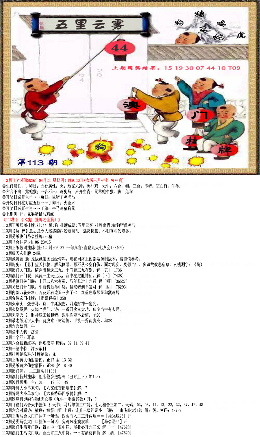 113期:【气涌如山★★★⑿码中特】完美中奖
