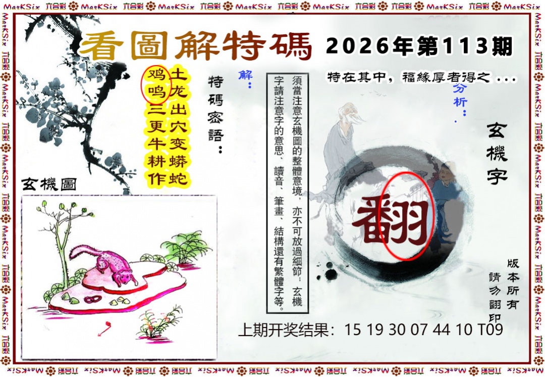 113期:【吟风弄月★★★⑥码中特】完美中奖
