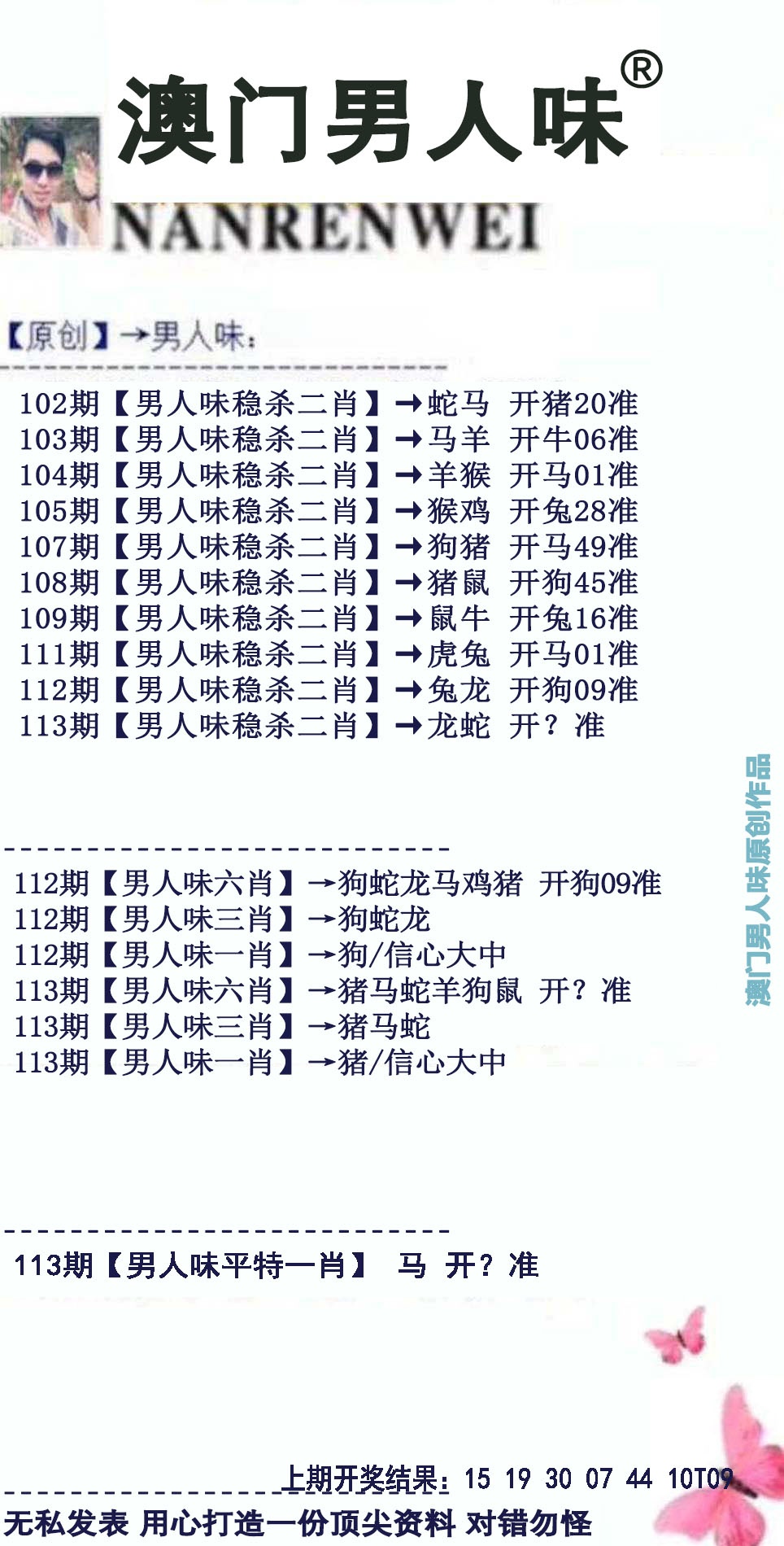 113期:【舍我其谁★★★四肖中特】完美中奖